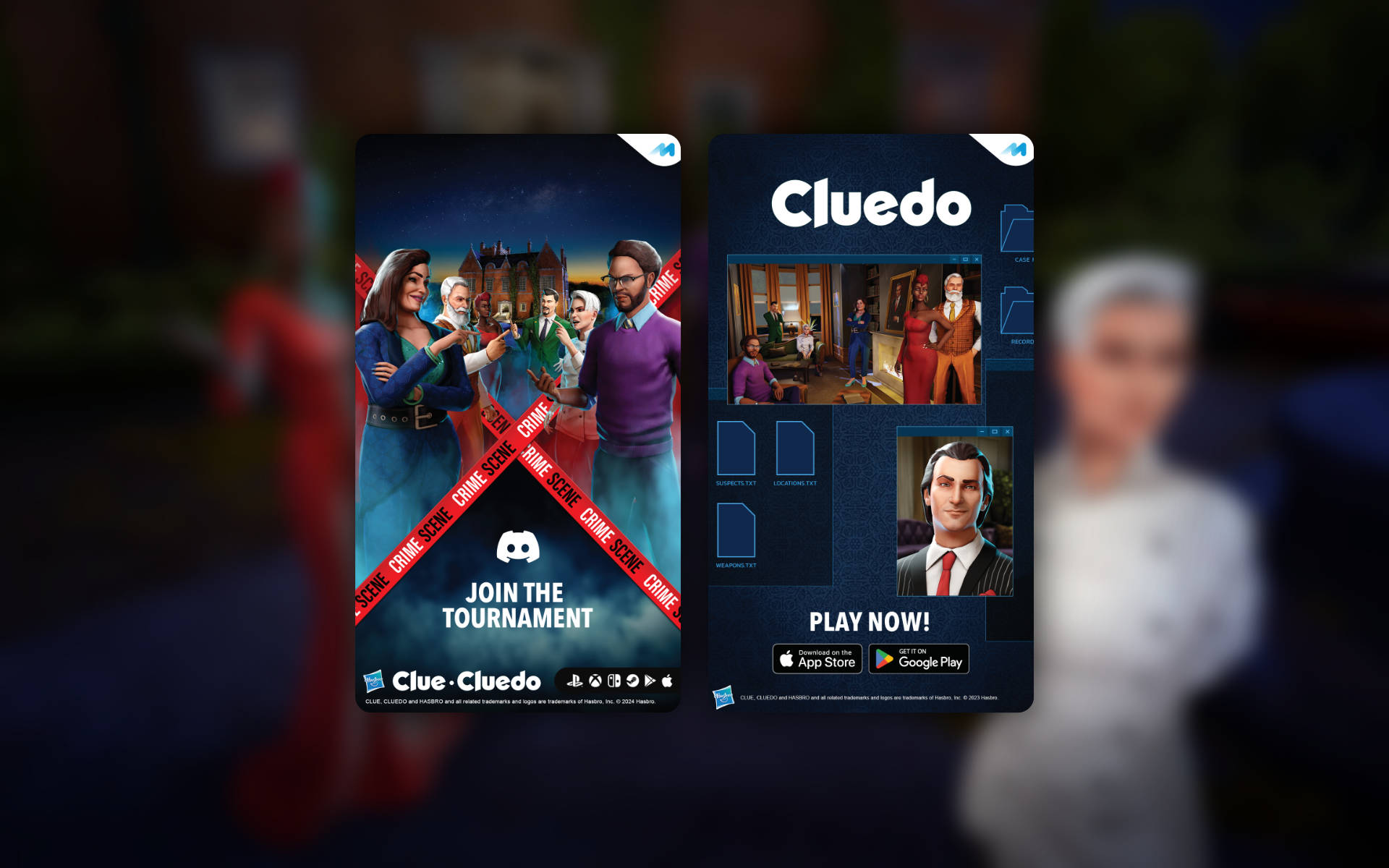 For Cluedo, I created social media assets to promote new Case Files—each introducing a new location, characters with fresh outfits, themed cards, and unique weapons. Every release brought a new mystery, and the content I developed helped highlight those storylines while staying true to Cluedo’s lore and atmosphere. I also supported community-driven events, Twitch streams with the dev team, and themed challenges, all designed to deepen player engagement and bring the evolving world of Cluedo to life.